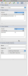 Select an NSObject from the library window. NSObject is a blue cube. Drag NSObject to the nib file window. An NSObject named Object should now appear in the nib file window. Choose Tools >Identity Inspector to open the identity inspector. Select the NSObject in the nib file window.